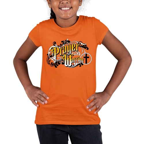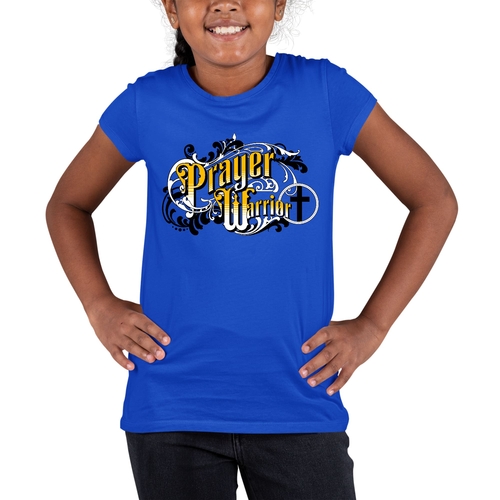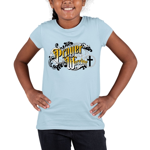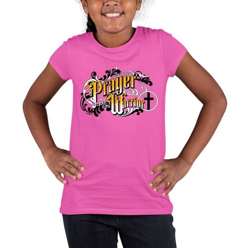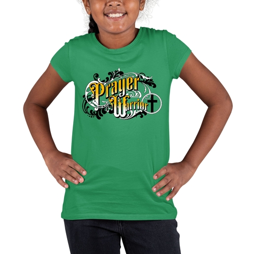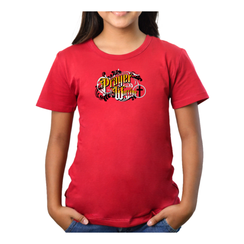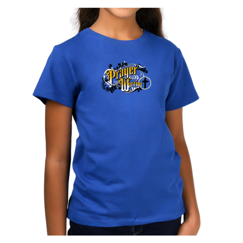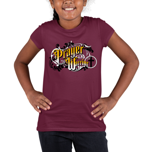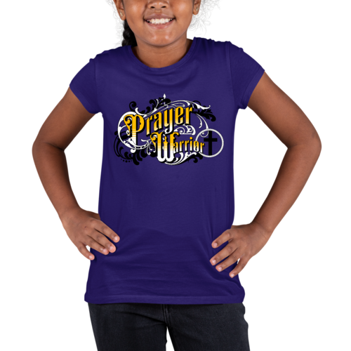The Prayer Warrior graphic adds a unique touch to this T-shirt, making it a great choice for youth who want to express their faith and individuality. This T-shirt can be paired with jeans, shorts, or skirts, making it a versatile piece for any occasion. Whether it's a casual day at school, a weekend outing, or a family gathering, this T-shirt is sure to make a statement.