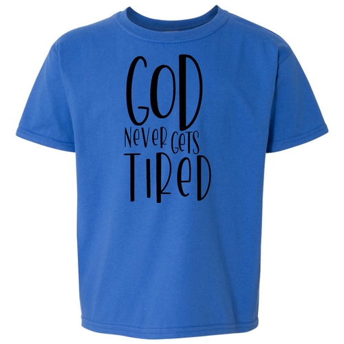 What sets this T-shirt apart is its inspirational quote, 'God Never Gets Tired.' This message serves as a reminder of faith and resilience, encouraging young boys to embrace positivity and strength in their daily lives. It's a great conversation starter and a way for kids to express their beliefs and values.