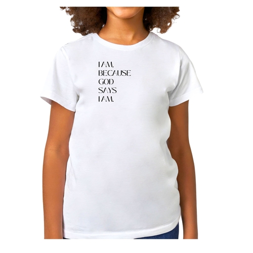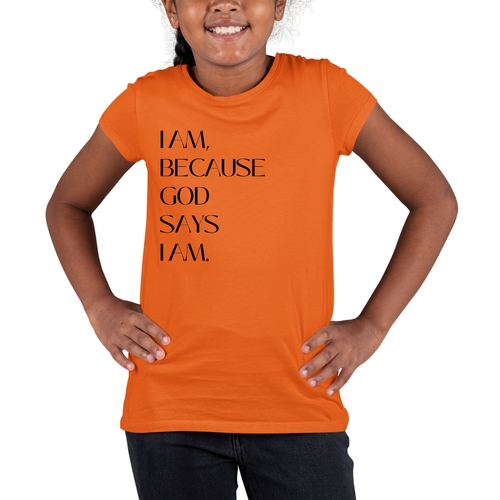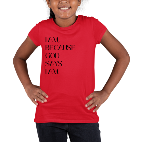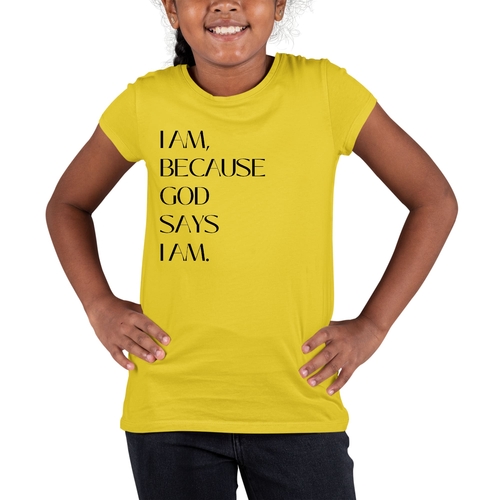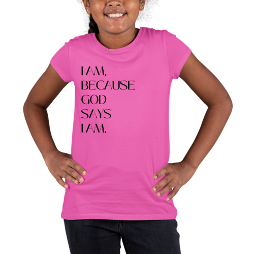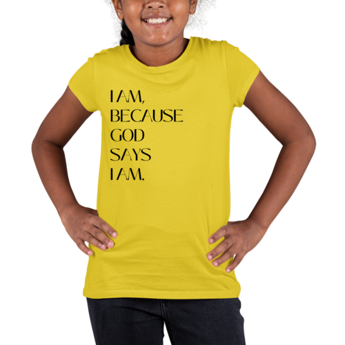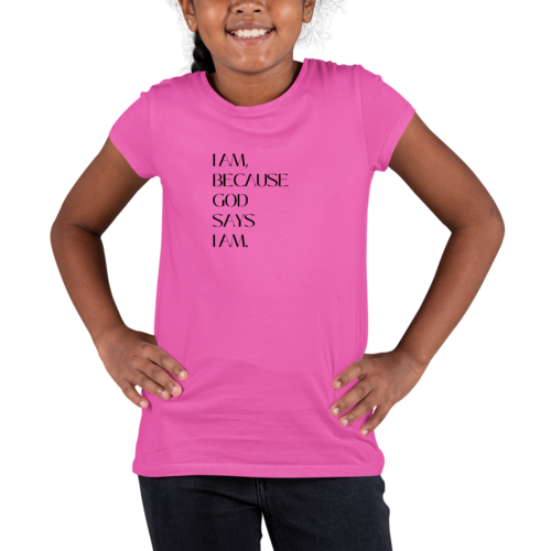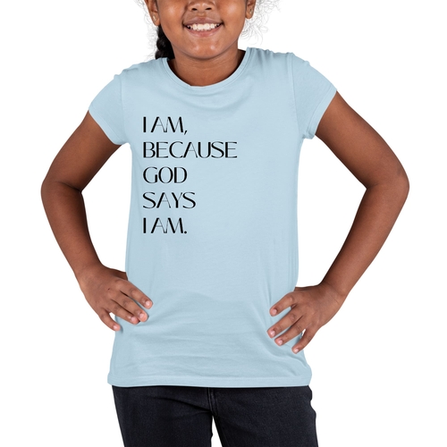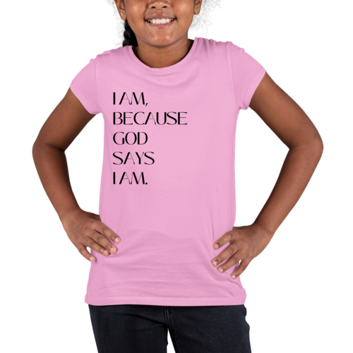 Introducing the Youth Short Sleeve Graphic T-shirt, a perfect blend of comfort and inspiration. This T-shirt features the uplifting message, 'Say It Soul, I Am Because God Says I Am,' making it an ideal choice for young girls who want to express their self-worth and faith. Crafted from soft, preshrunk cotton, this shirt ensures that it retains its softness and size even after multiple washes, providing lasting comfort.