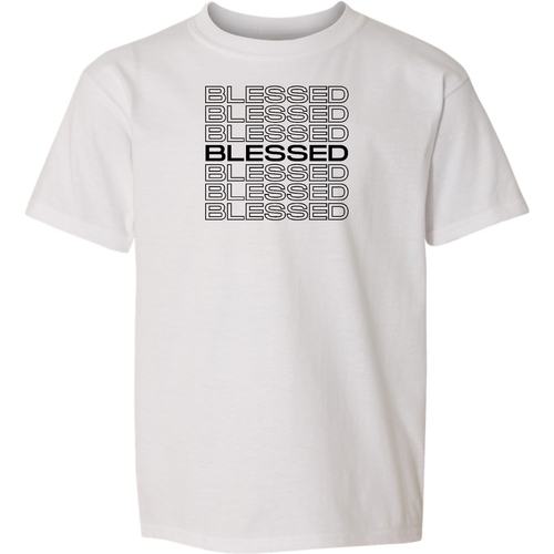 In summary, the Youth Short Sleeve Graphic T-shirt with Stacked Blessed Print is an excellent choice for parents looking for a stylish, durable, and comfortable t-shirt for their children. With its inspirational design, quality materials, and thoughtful construction, this t-shirt is sure to become a favorite in your child's wardrobe.