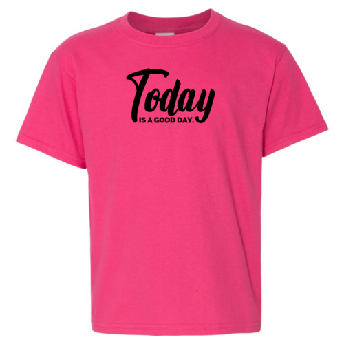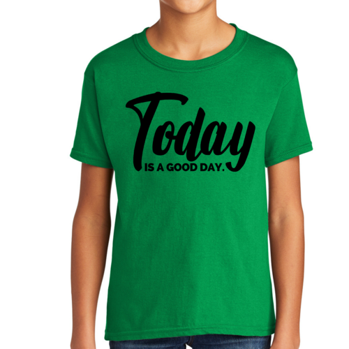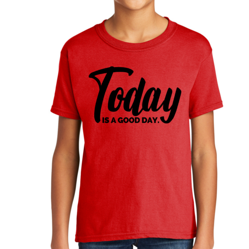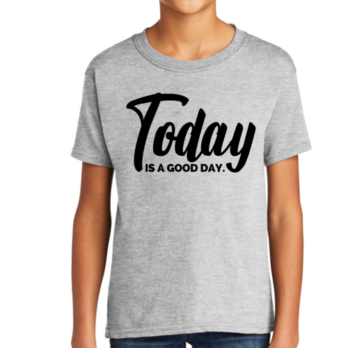 Youth Short Sleeve Graphic T-shirt in black with 'Today is a Good Day' printed design, showcasing a comfortable fit and quality fabric.