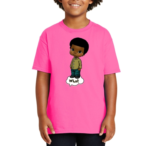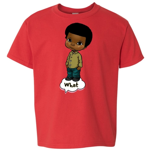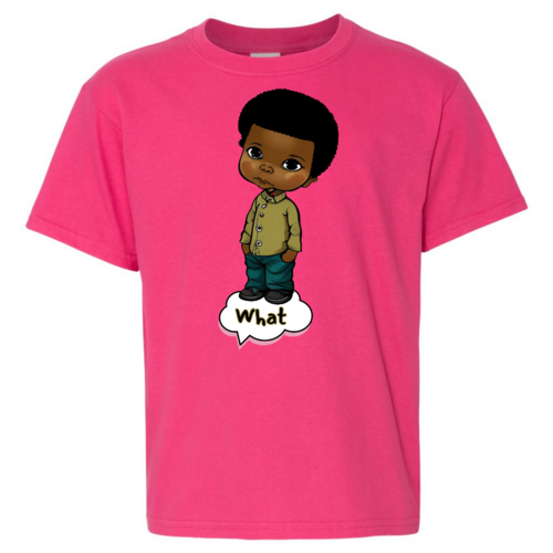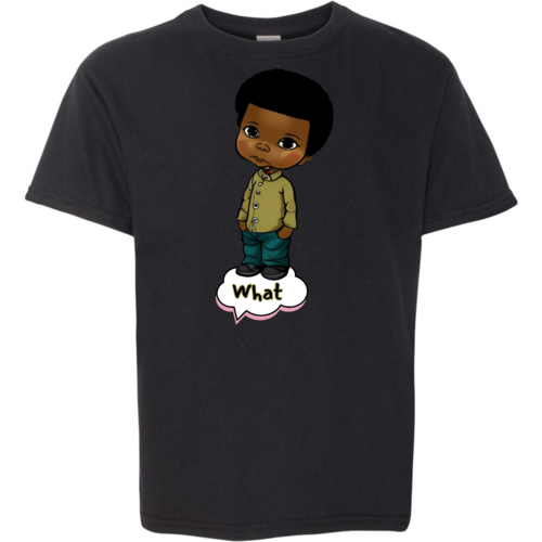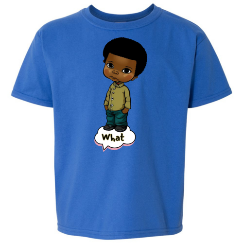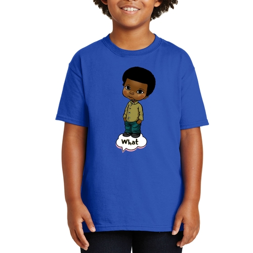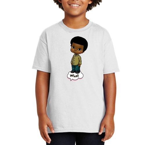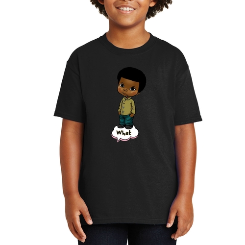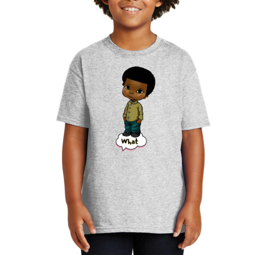 Introducing our Youth Short Sleeve Graphic T-shirt, a perfect blend of style and comfort for young boys. This T-shirt features a unique illustration of an African American boy, making it a standout piece in any child's wardrobe. Crafted from soft, preshrunk cotton, this shirt ensures that it retains its softness and size even after multiple washes, providing long-lasting wear.