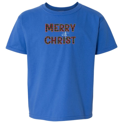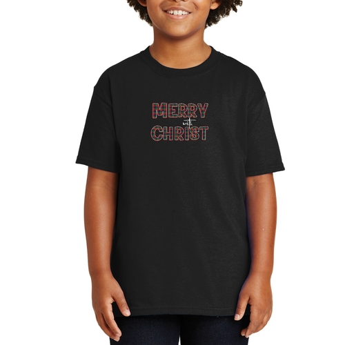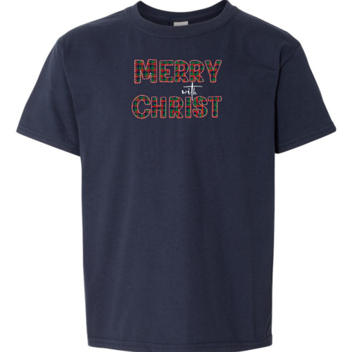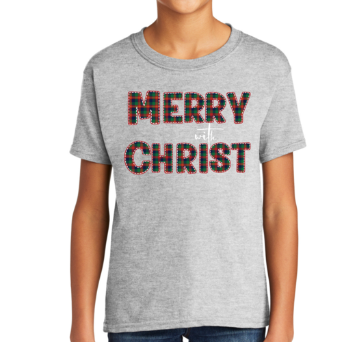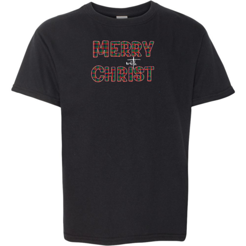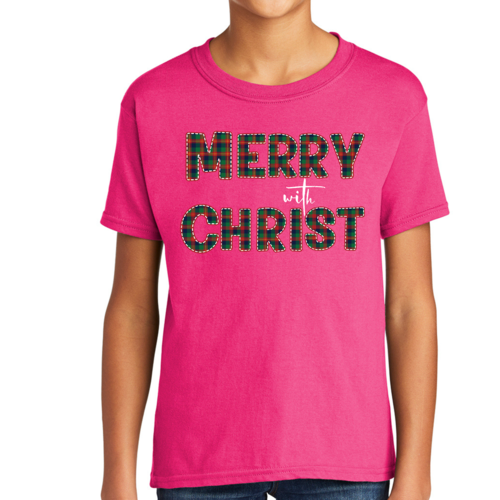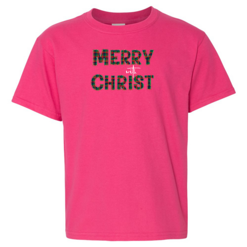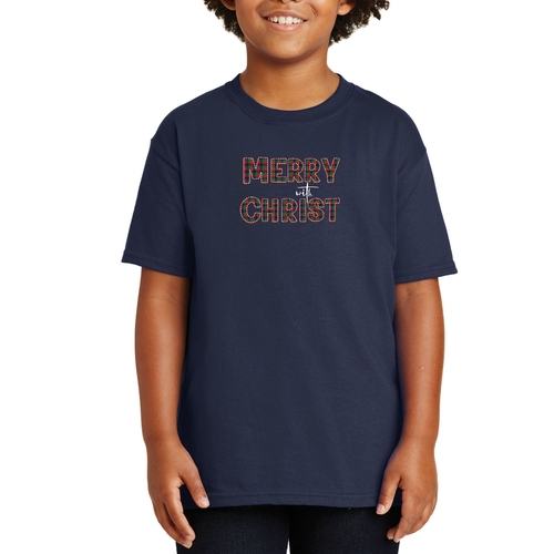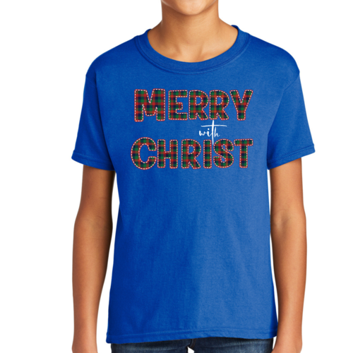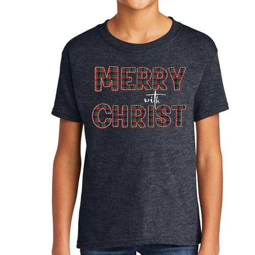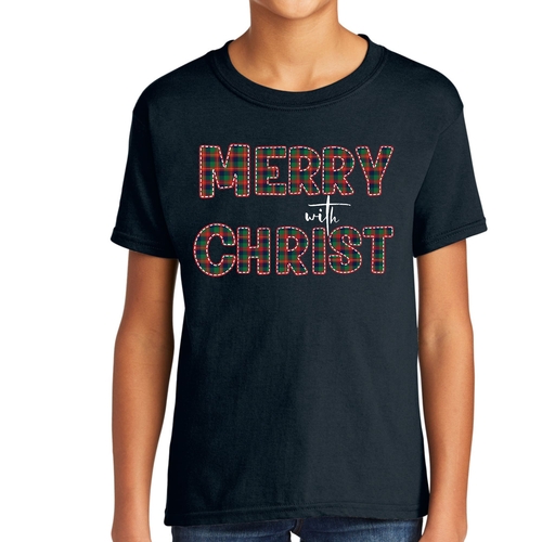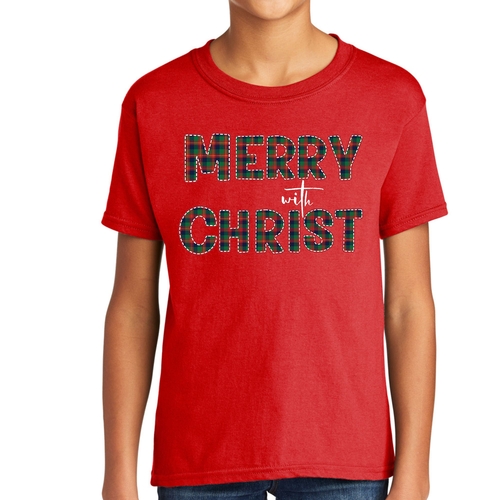 The vibrant red and green plaid design of the Youth Short Sleeve T-shirt Merry with Christ adds a cheerful touch to any outfit. Perfect for the holiday season, this shirt allows your child to express their festive spirit while staying comfortable. It's an excellent choice for Christmas celebrations, school events, or simply spreading holiday cheer.