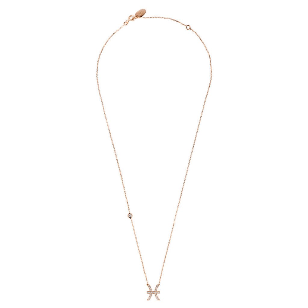Rose gold Pisces zodiac star sign pendant necklace made of 925 sterling silver with white zircons.