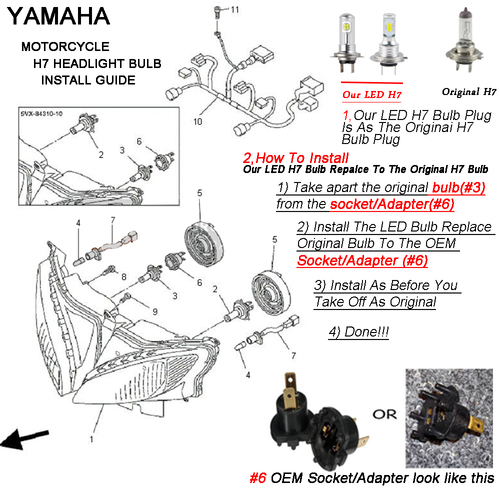 100W/pari H7 Headlight LED Bulb Lamp For Yamaha
