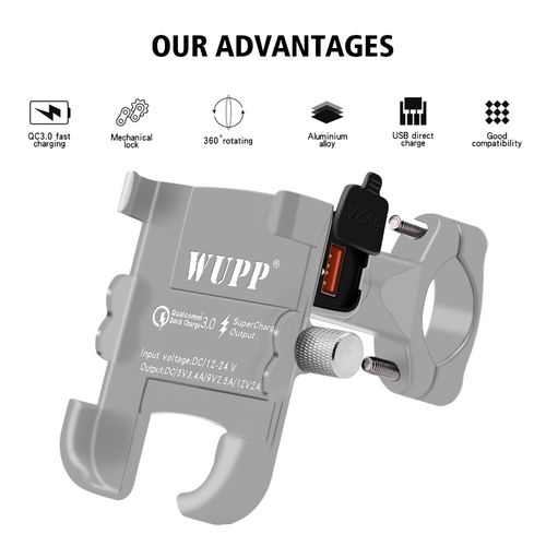 Aluminium Bicycle Motorcycle Phone Holder with USB Charger