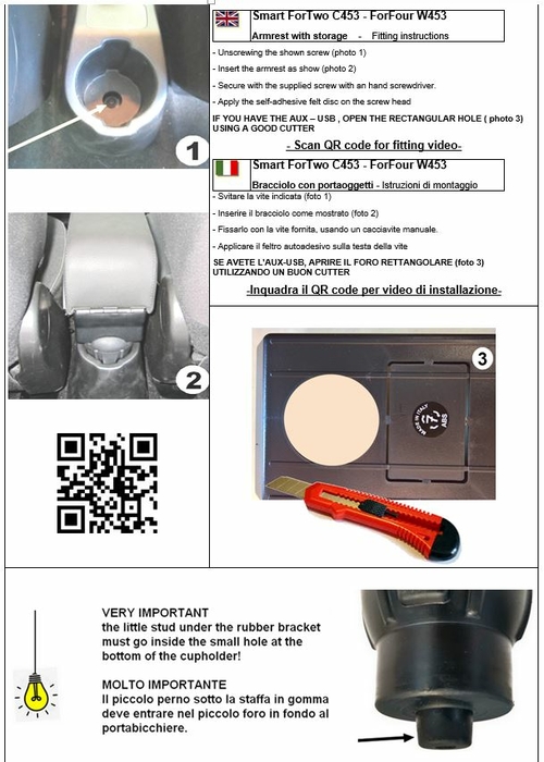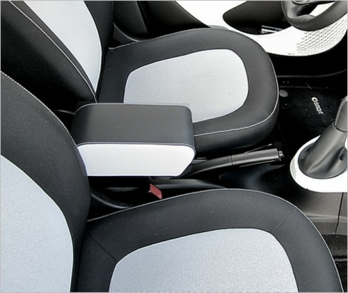 Specific armrest for SMART ForFour (2014-2021) and ForTwo (214-2021) equipped with a large storage compartment. The assembly is completely invisible (once installed no screws or brackets will be visible) making e armrest an integral part of the central tunnel.