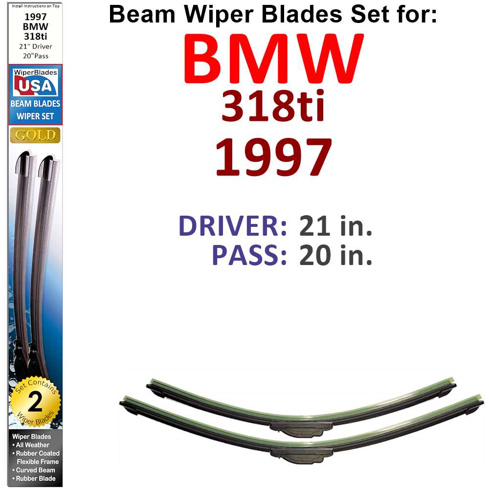 Each set includes two wiper blades: a 21-inch driver side blade and a 20-inch passenger side blade, specifically pre-set for your 1997 BMW 318ti. Installation is a breeze with our step-by-step instructions and accompanying video, making it easy for you to do it yourself. If you encounter any issues during installation, our customer service team is ready to assist you or help you initiate a return.