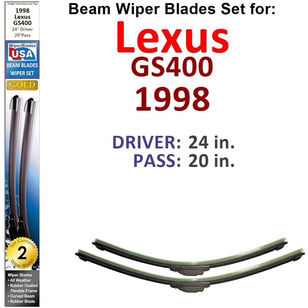 These WiperBladesUSA Gold Beam Wiper Blades are guaranteed to specifically fit your 1998 Lexus GS400 when you follow our easy-to-use step-by-step instructions with video. Upgrade your vehicle's wiper system today and enjoy enhanced visibility and safety on the road, no matter the weather conditions.
