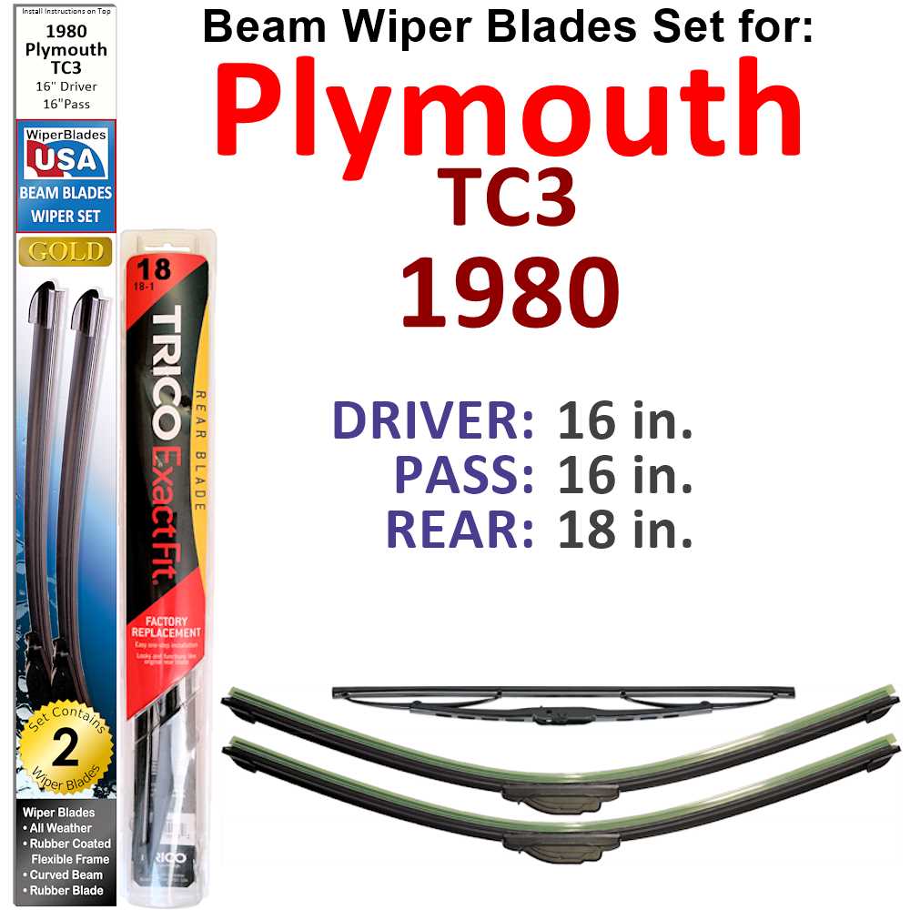 The Beam Wiper Blades for the 1980 Plymouth TC3 come in the following sizes: