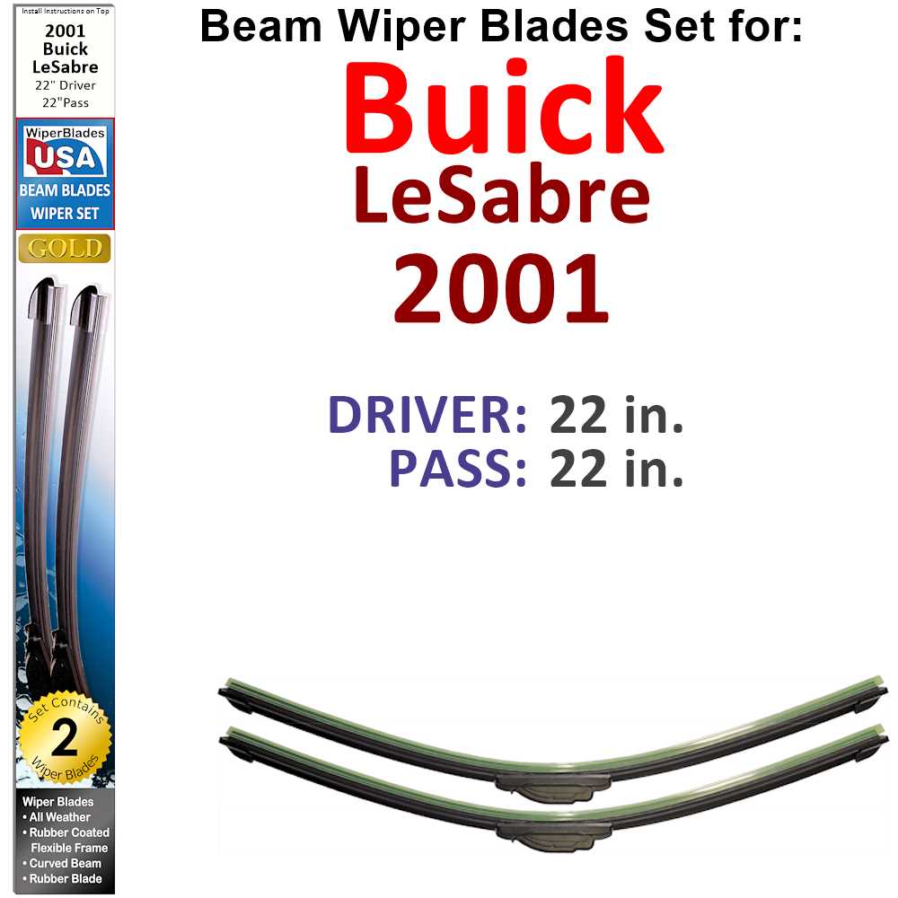 Your 2001 Buick LeSabre requires wiper blades of 22 inches for both the driver and passenger sides. These Beam Wiper Blades are specifically designed to meet these specifications, ensuring optimal performance and fit.