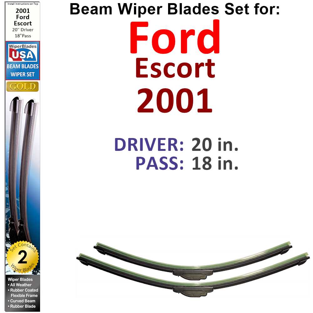 The Beam Wiper Blades for the 2001 Ford Escort come in two sizes: 20 inches for the driver side and 18 inches for the passenger side. This ensures a perfect fit and optimal coverage for your windshield.
