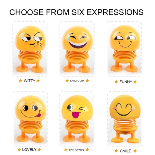 Main Material: Plastic Fiber Item Weight: 80g Style 1: Funny Emoji Wobble Toys Style 2: Car Toys Style 3: Car Smilely Toys Style 4: Car Decoration Creative Personality Style 5: Car Accessories Style 6: Emoji Doll ornaments