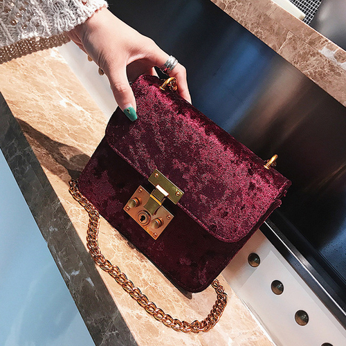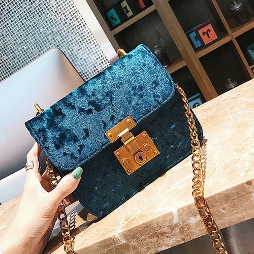 Dropship Fashion Women Retro Gold Velvet Bag Shoulder