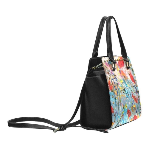 The Colorful Paint Splatter Rivet Style Top-handle Bag is the perfect blend of style and functionality. This handbag is designed to be a statement piece that complements your unique fashion sense while providing practicality for everyday use. With its vibrant paint splatter design, this bag is sure to turn heads and make you stand out in any crowd.