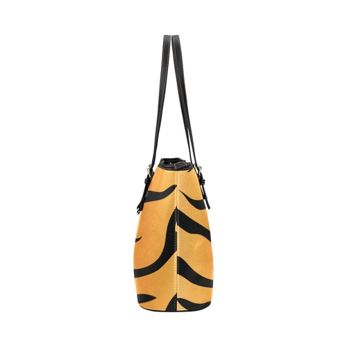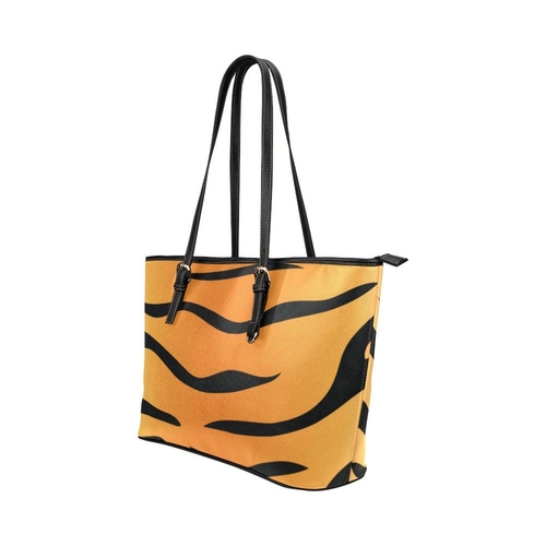 Introducing the Large Leather Tote Shoulder Bag in a striking Orange and Black Tiger Stripe design, a perfect blend of style and functionality. This women's tote bag is designed to cater to your dynamic lifestyle, making it an essential accessory for any occasion. Whether you're heading to work, school, or a special event, this versatile bag will complement your outfits effortlessly.