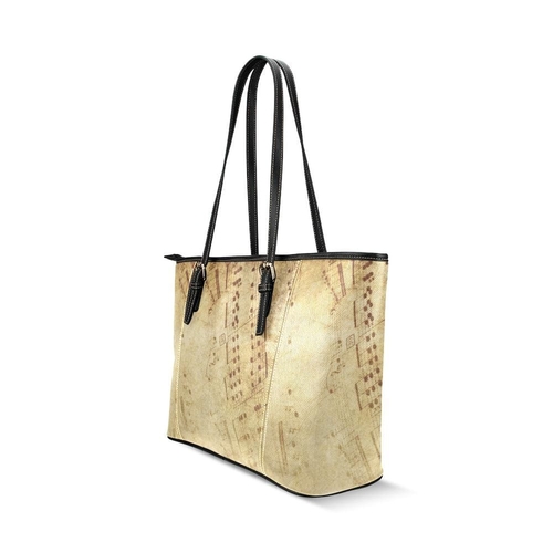 Introducing the Large Leather Tote Shoulder Bag in a stunning tan and brown sheet music pattern, designed to elevate your personal style while providing unmatched functionality. This versatile bag is perfect for anyone looking to combine fashion with practicality. Whether you're heading to work, school, or a special event, this tote bag is the ideal companion.