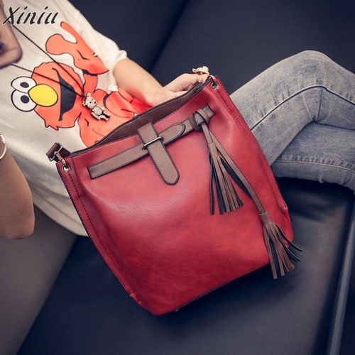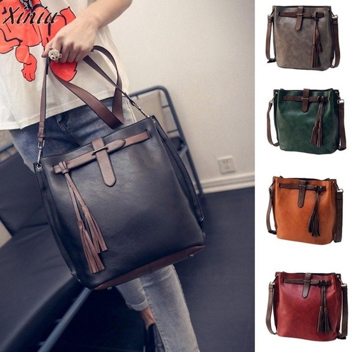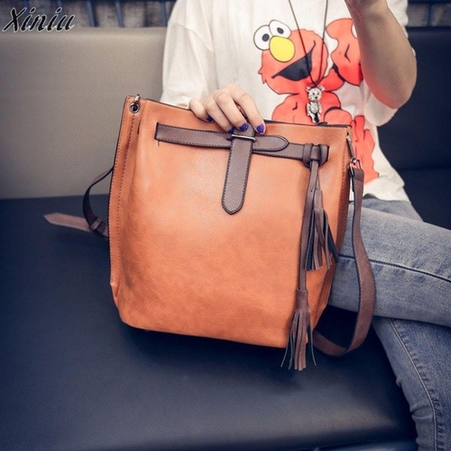 Dropship Women Messenger Bag Tassel Bucket Vintage