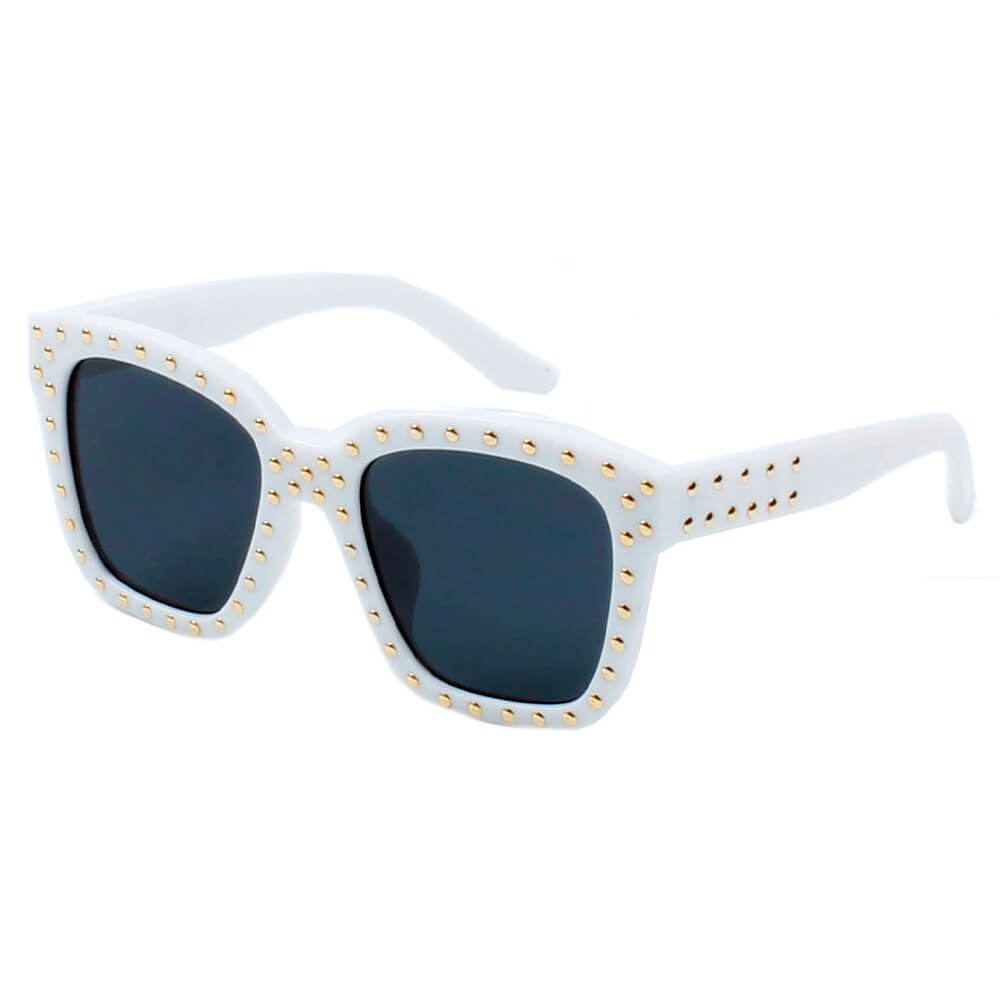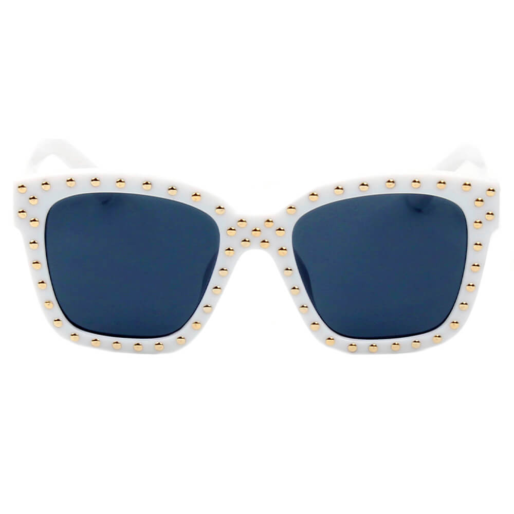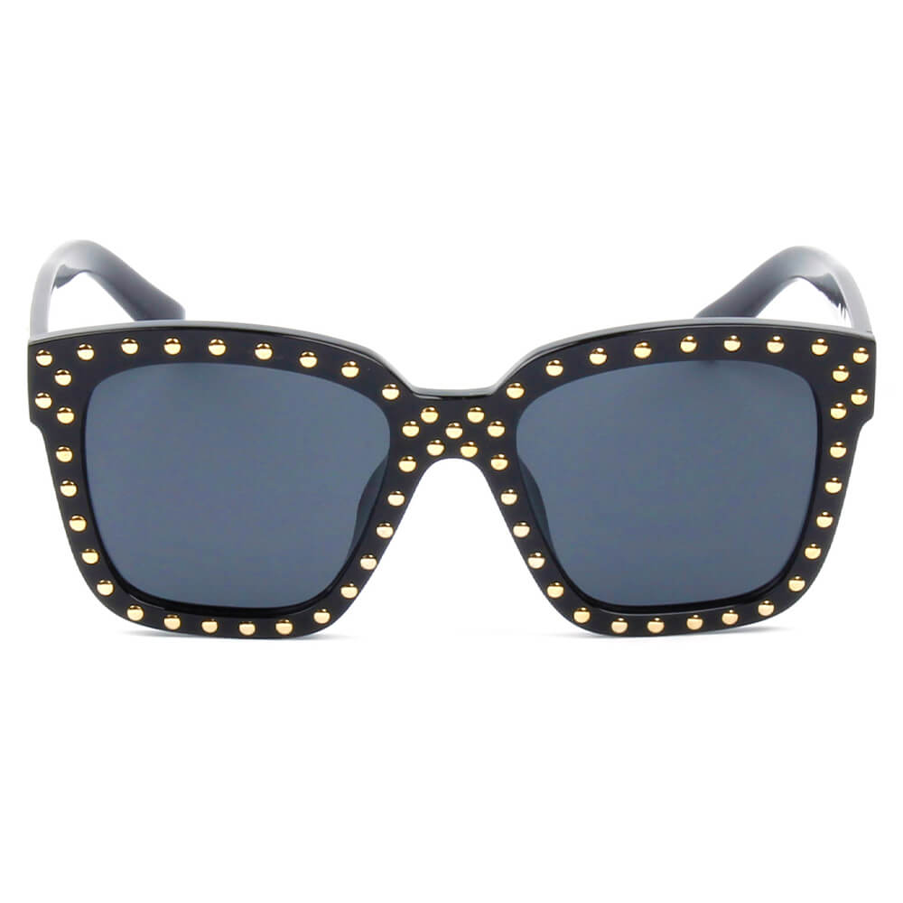 The EPPING sunglasses feature a striking oversized square frame that not only enhances your facial features but also adds a touch of sophistication to your outfit. The gold studs adorning the frame create a stunning contrast against the sleek design, making these sunglasses a must-have for fashion enthusiasts. Whether you're dressing up for a special event or keeping it casual, these sunglasses will complement your look effortlessly.