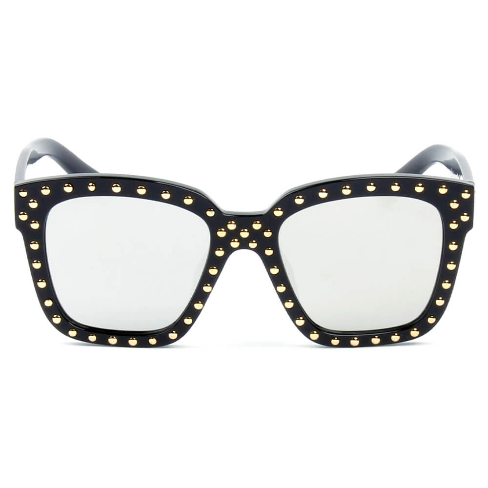 Introducing the EPPING Hipster Marquee Lights Square Frame Sunglasses, the ultimate accessory for those who want to make a bold fashion statement. These ultra-chic oversized sunglasses are designed to elevate your style while providing essential eye protection. With their unique square frame and glamorous gold studs, these sunnies are perfect for any occasion, whether you're lounging by the pool or strolling through the city.
