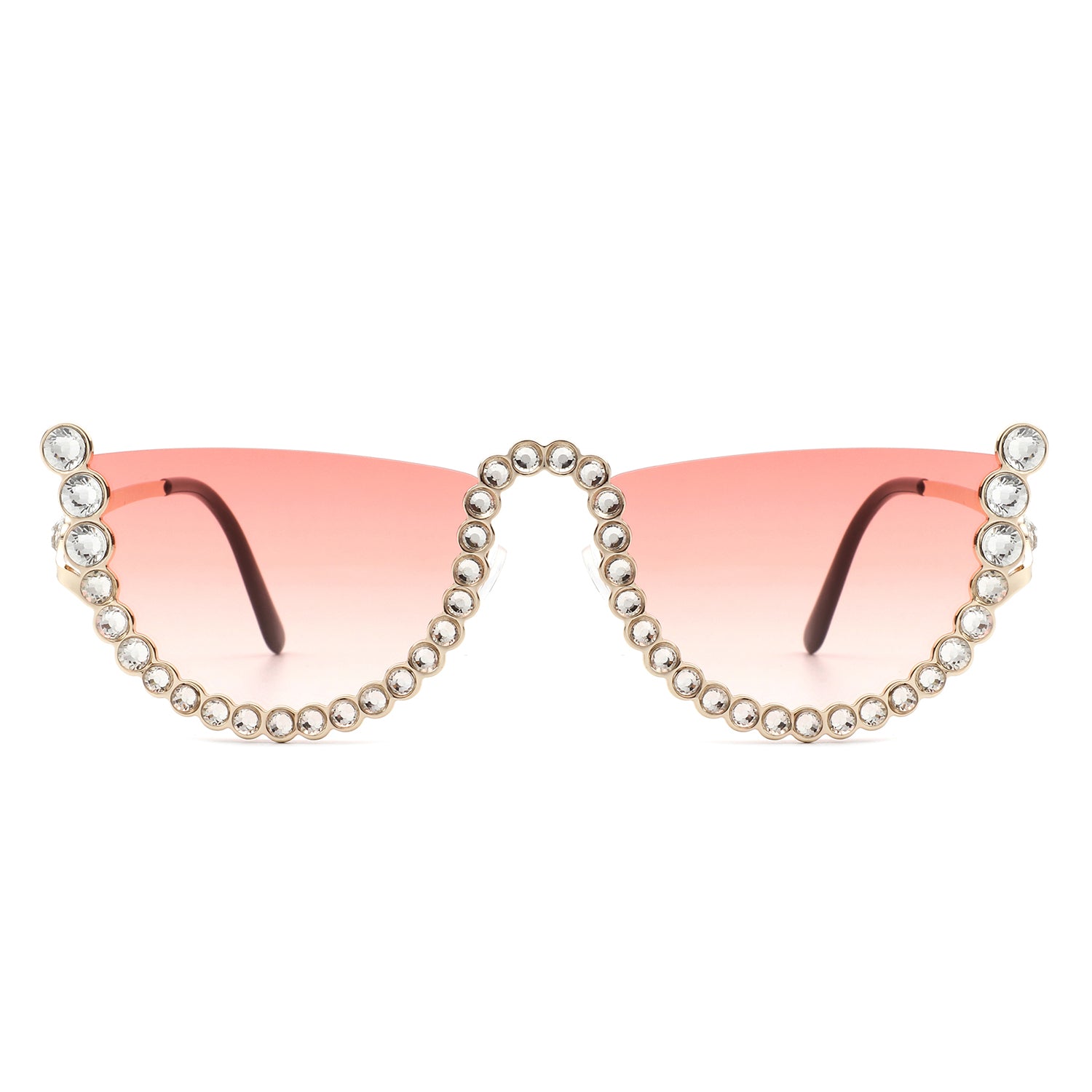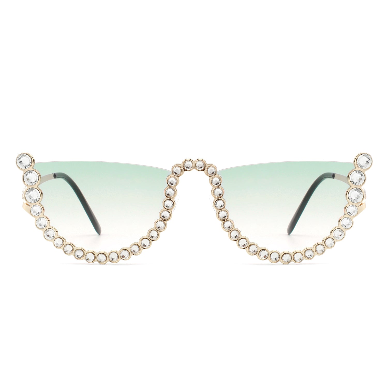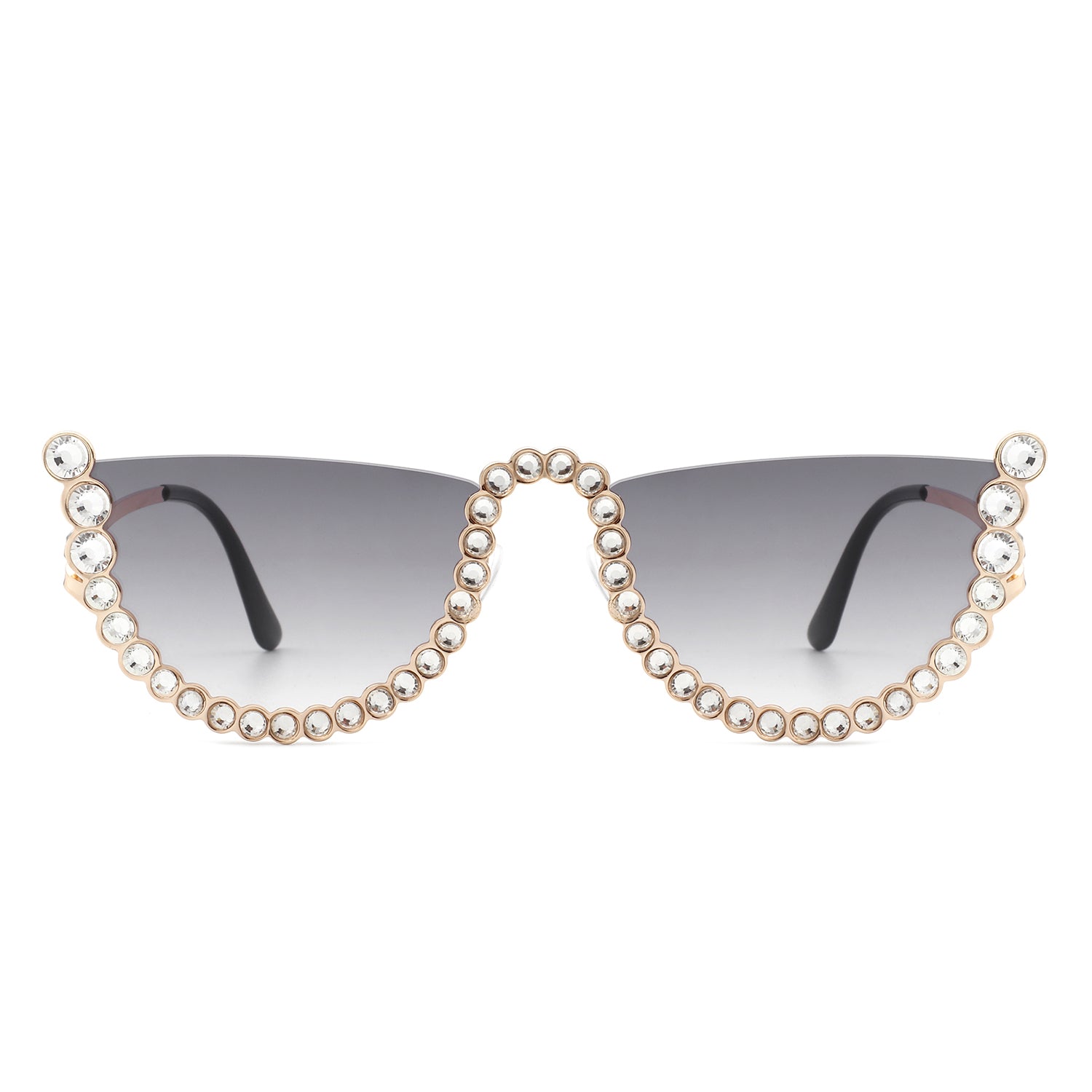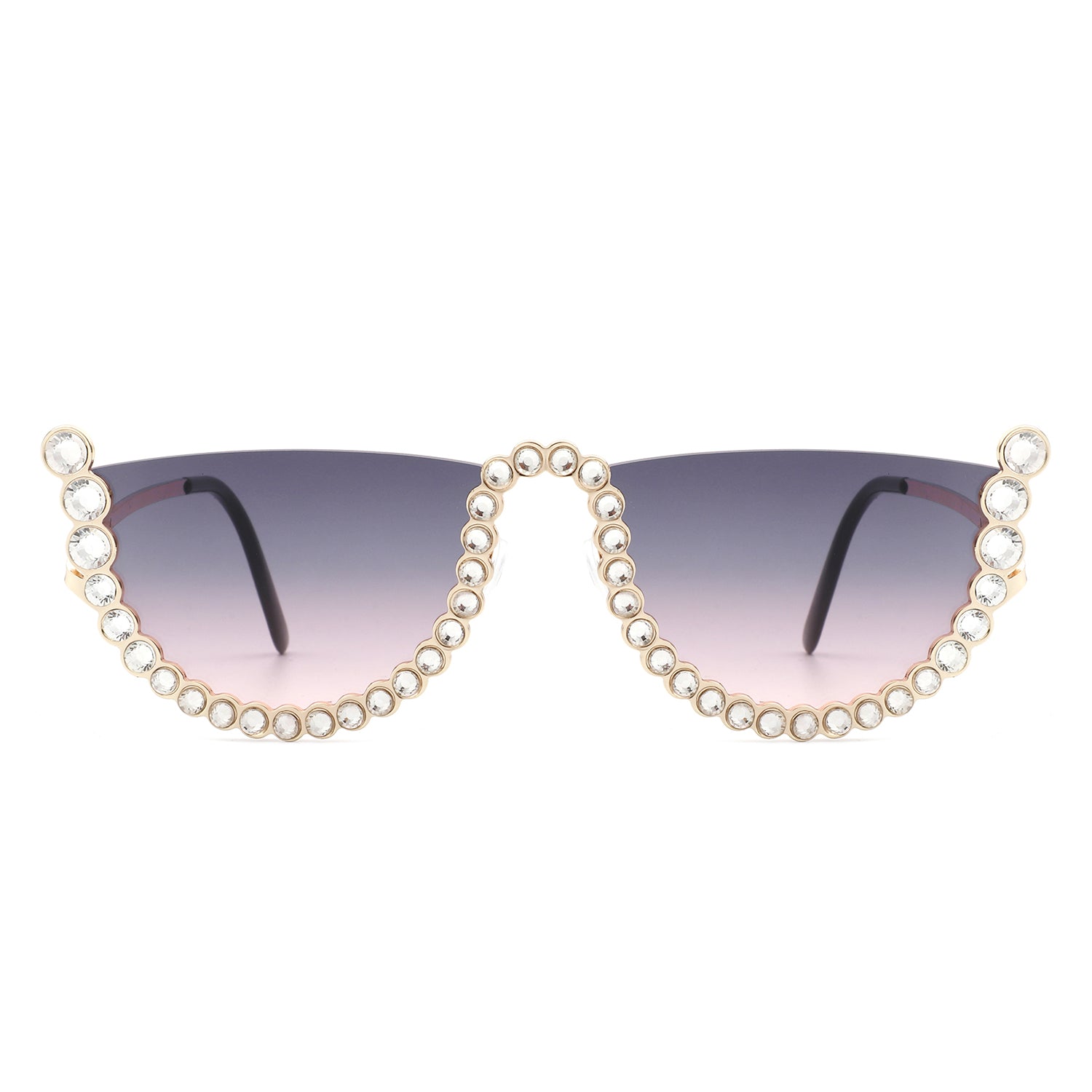 The Florinda sunglasses feature a unique half-frame design that combines elegance with modern flair. The round shape is flattering for various face shapes, making them a versatile choice for any outfit. The rhinestone embellishments add a touch of glamour, making these sunglasses perfect for both casual outings and special occasions.