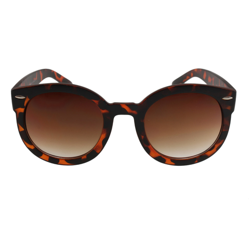 Fashion oversized round shaped sunglasses with decorative metal accents on frame corners, featuring gold plate Leopard detailing. Luxurious and fashionable for that Diva look. Complement any look with these fashion forward sunglasses that are sure to become an wardrobe staple. Transition easily from work to play in shades that make style look effortless. High quality fashionable eyewear paired with impact resistant lenses. Sunglasses have been FDA approved. Offers UV400 protection against UVA and UVB rays. Includes microfiber soft pouch. 52mm lens width, 21mm bridge width, 130mm arm length.