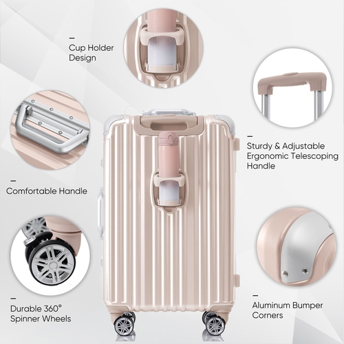 • The newly designed cup holder is perfectly integrated into the structure of the spinner luggage, providing you with a convenient option to put your cup on the go without worrying about it tipping or slipping.