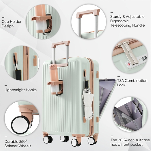Smart Convenience Features: The 20-inch carry-on luggage is equipped with a USB interface, allowing you to charge your mobile devices anytime, anywhere. Additionally, the integrated hook and cup holder design make it more convenient to use while traveling.