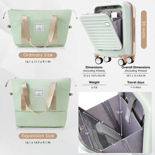 Versatile Combo Set: This set includes a 20-inch carry-on luggage and a travel bag, providing the perfect pairing for your travels, whether it's a short trip or a long journey.