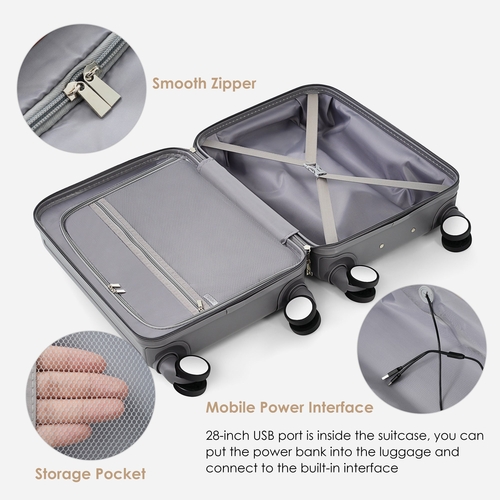 • Stay Connected on the Go: Keep your devices charged wherever your adventures take you. All three suitcases come with built-in USB ports (power bank not included), so you can conveniently power up your smartphone or tablet while on the move.
