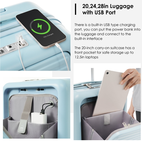 Stay Connected on the Go: Keep your devices charged wherever your adventures take you. All three suitcases come with built-in USB ports (power bank not included), so you can conveniently power up your smartphone or tablet while on the move.