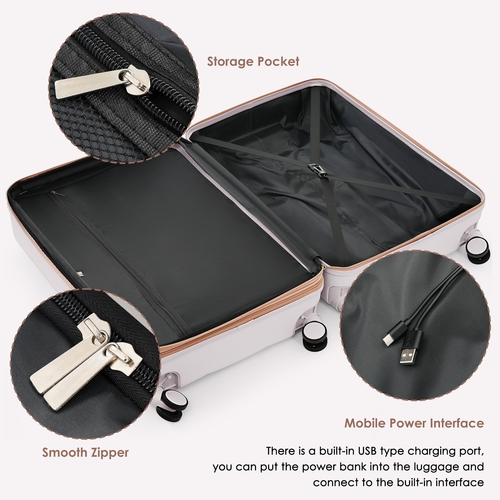 【3 Piece Luggage set】The 20" carry on suitcase features USB charging ports (Power bank not included), 24", 28 "are expandable, adding 25% space capacity for hardshell luggage.