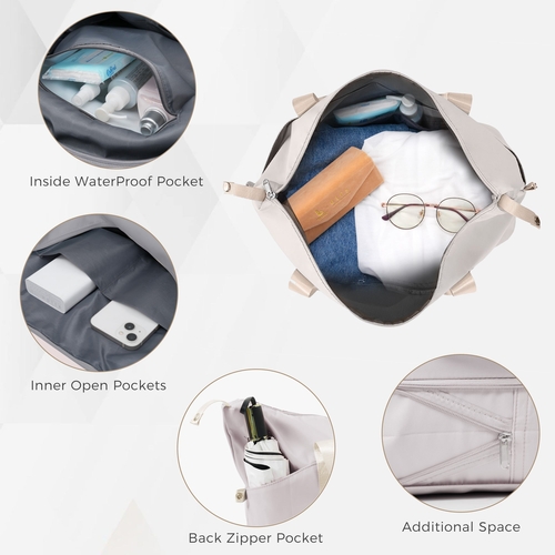 【Expandable weekender travel bag】 Made of polyester fabric, the bags are mild water-repellent with multiple pockets for organization.