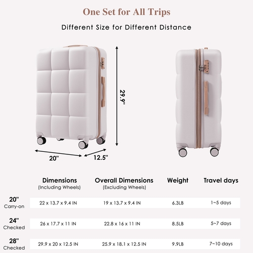 【High Quality Luggage Sets】Made from extra strong ABS material, which is lightweight and extremely durable. Features textured finish to prevent against scratches,keeping lightweight luggage set beautiful trip after trip.