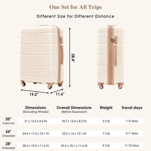 • 【3 Piece Luggage set】The 20" carry on suitcase features USB charging ports (Power bank not included), 24", 28 "are expandable, adding 25% space capacity for hardshell luggage.