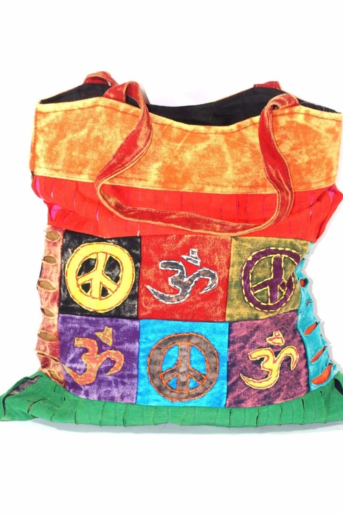 The Peace & Om Patchwork Jhola Carry Bag is an exclusive and colorful handmade accessory that combines functionality with a vibrant aesthetic. Crafted from 100% cotton, this bag showcases beautiful flower child style embroidered patchwork featuring the spiritual symbols of peace and om. These symbols not only add a unique flair to the bag but also resonate with those who appreciate spirituality and mindfulness. Measuring 17 inches in height and 16 inches in width, this jhola carry bag is spacious enough to accommodate your essential items, whether you're heading to a yoga class, going to school, or enjoying a day out at the market or a picnic. The bag is designed with a multi-purpose approach, making it suitable for various everyday needs. It includes an inner pocket for added organization and a secure zipper enclosure to keep your belongings safe. The handmade nature of this item means that each bag may have slight variations in size and design, adding to its uniqueness and charm. The stonewashed finish gives the bag a soft texture and a vintage look, making it not only practical but also stylish. This jhola carry bag is perfect for those who lead an active lifestyle and want to carry their essentials in a fun and eco-friendly way. Whether you're a student, a yoga enthusiast, or someone who enjoys outdoor activities, this bag is designed to meet your needs while reflecting your personal style. The vibrant colors and intricate designs make it a standout accessory that can complement any outfit. Additionally, the Peace & Om Patchwork Jhola Carry Bag is an excellent gift choice for friends and family who appreciate handmade items and spiritual symbols. Its versatility allows it to be used for various occasions, from casual outings to more formal events. With its spacious interior and thoughtful design, this bag is sure to become a favorite in your collection. Embrace the spirit of peace and mindfulness with this beautiful carry bag that not only serves a practical purpose but also promotes a positive message. The Peace & Om Patchwork Jhola Carry Bag is more than just a bag; it's a statement piece that embodies a lifestyle of harmony and creativity. Make it a part of your daily routine and enjoy the blend of style and functionality it offers.
