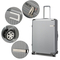 •An ultra-modern shape, lightweight yet durable, and cutting-edge features, define Mia K. s Tulum luggage collection. Remarkably robust and surprisingly lightweight, this timeless classic is an unparalleled example of craftsmanship and innovation. The Tulum 28 spinner suitcase, is designed with a hard polycarbonate shell that has a highly scratch-resistant texture to keep your suitcase beautiful trip after trip. The telescopic handle with push-button lock engineered for seamless adjustment ensures maximum comfort and smooth maneuverability. Additional features include 360-degree dual spinner wheels, a grip handle on top and side for easy lifting. Aluminum corner armor as well as stylish smooth zippers. Travel with comfort and style with the Tulum luggage collection