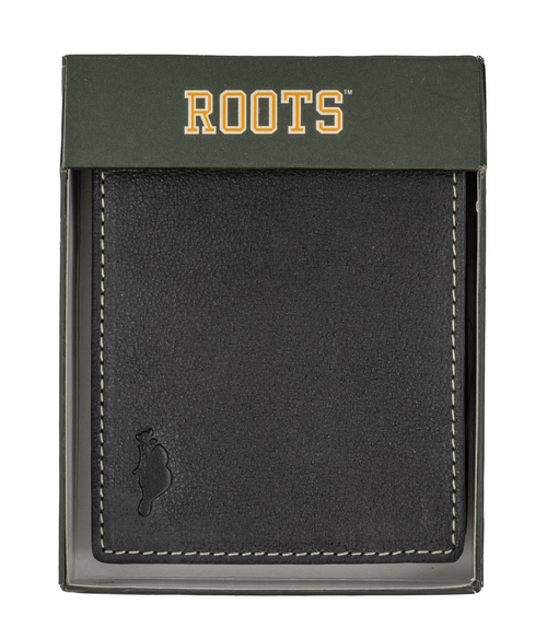 In addition to the card slots, the Men's Slim Wallet features two slot pockets, ideal for storing cash, receipts, or other small items. The billfold compartment is spacious enough to accommodate various denominations of currency, ensuring that you can keep your cash organized and accessible. The ROOTS embossed design detail adds a touch of elegance, making this wallet not just a practical item but also a stylish accessory that complements any outfit.