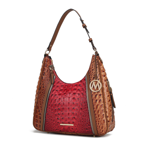 The Becket Shoulder Bag is a chic and structured bag that will add instant personality to any look. Crafted from a combination of faux crocodile-embossed and smooth vegan leather with a color block finish, and designed with gold-tone embellishment, this style is a forever bag. Open the top zipper closure to reveal a fully lined well-organized interior with dedicated pockets for your phone, wallet and other small items. The exterior features a convenient back zipper pocket and a side vertical zippered pocket to keep your small belongings. You will love how the adjustable top handle will comfortably slip over your shoulder. This style has a flat base and feet for stability. It comes with our round M emblem attached to a string for decoration. You will love this both practical and polished style.