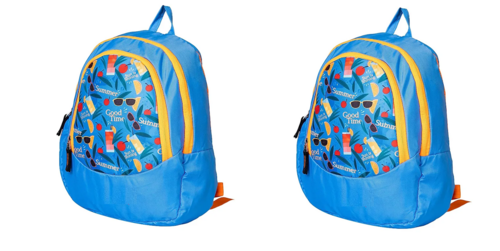 Two vibrant blue backpacks perfect for siblings or friends, designed for school use with ample storage space.