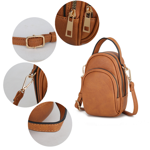 • Our Claire Small Crossbody Bag is perfect for occasions when you want to keep your essentials close. Sized to carry your phone, keys, and lipstick, it’s crafted from high-quality vegan leather and designed with luxurious gold tone embellishments. The Claire Small Crossbody has an adjustable and removable strap, a zip pocket on the front, and zipper closures. You will love this cute Claire Small Crossbody