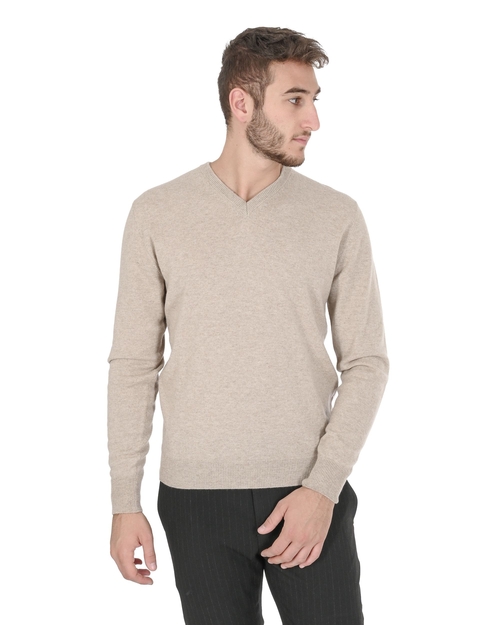 Dropship Crown of Edinburgh Cashmere Mens V Neck Sweater COE 0012 BEIGE