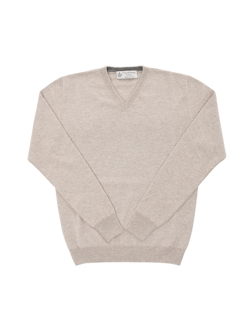 Crown of Edinburgh Cashmere Mens V Neck Sweater COE 0012 BEIGE