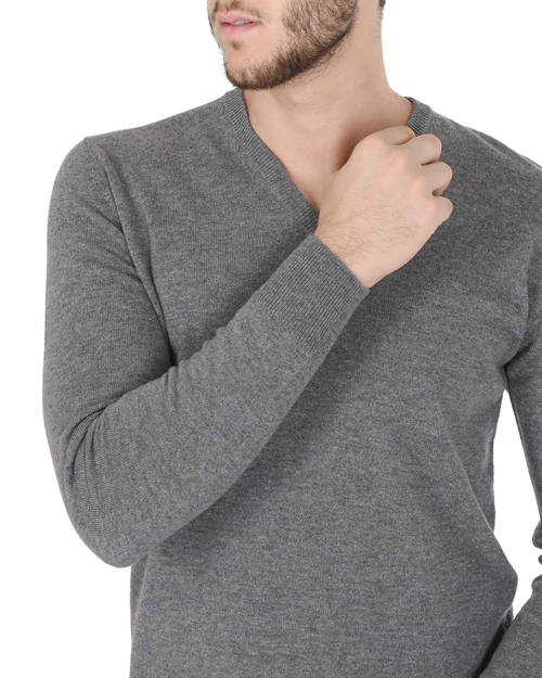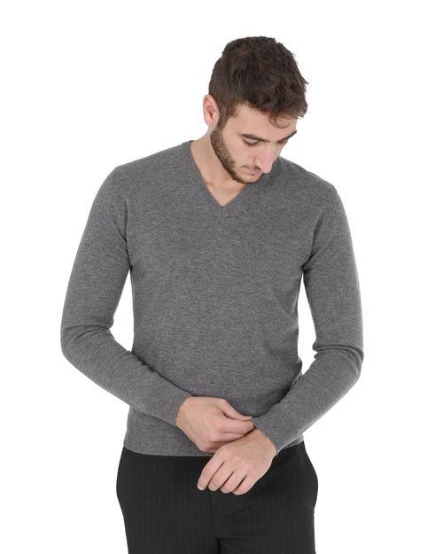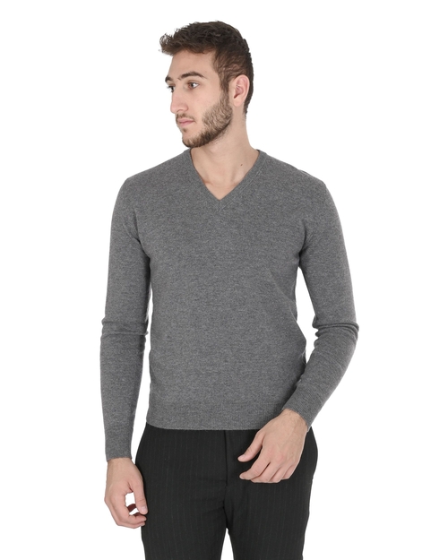 Dropship Crown of Edinburgh Cashmere Mens V Neck Sweater COE 0012 GREY