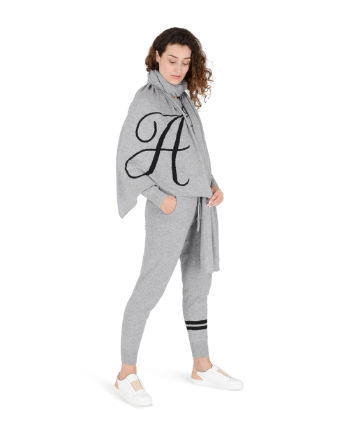 Crown of Edinburgh Cashmere Monogrammed Scarf DEAN VILLAGE GREY A