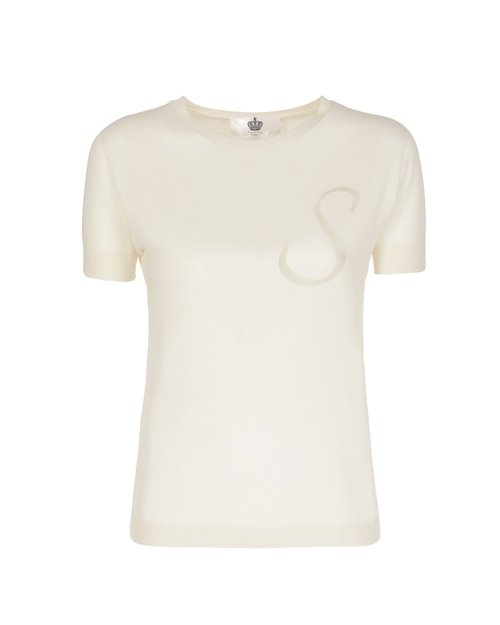 Crown of Edinburgh Cashmere Short Sleeve ART 003 IVORY LETTER S
