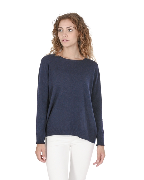 Crown of Edinburgh Cashmere Womens Square Neck Sweater COE 006 NAVY