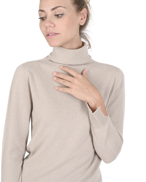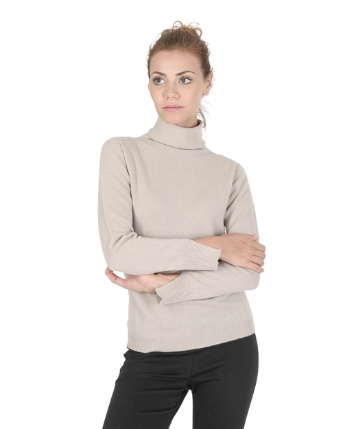 Crown of Edinburgh Cashmere Womens Turtleneck Sweater COE 0023 TAUPE