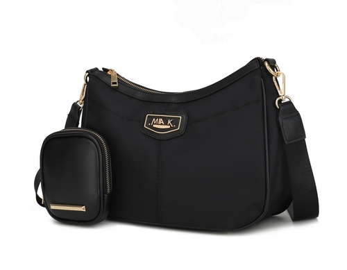 This wear-everywhere Freya Crossbody bag strikes the perfect balance between fashion and function. Give your look a sporty vibe with the Freya Crossbody Bag, featuring a convenient removable pouch for your small essentials. This lightweight and durable nylon bag with high-quality vegan leather trim is your go-to bag, ready for any day. Designed with gold-tone embellishments, unzips the Freya Crossbody to reveal a fully lined interior with slip pockets and a wall zippered pocket and offers plenty of storage for your essentials. This style includes two interchangeable crossbody straps, one crafted from vegan leather and another woven strap for a utilitarian finish. The Freya Crossbody has a flat base and protective metal feet.