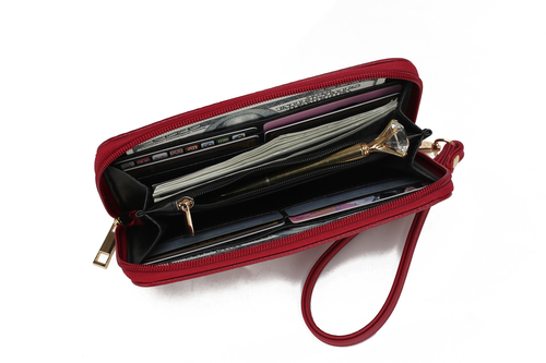 • 1 center zip pocket, 8 card slots, 2 slip pocket, zip fastening